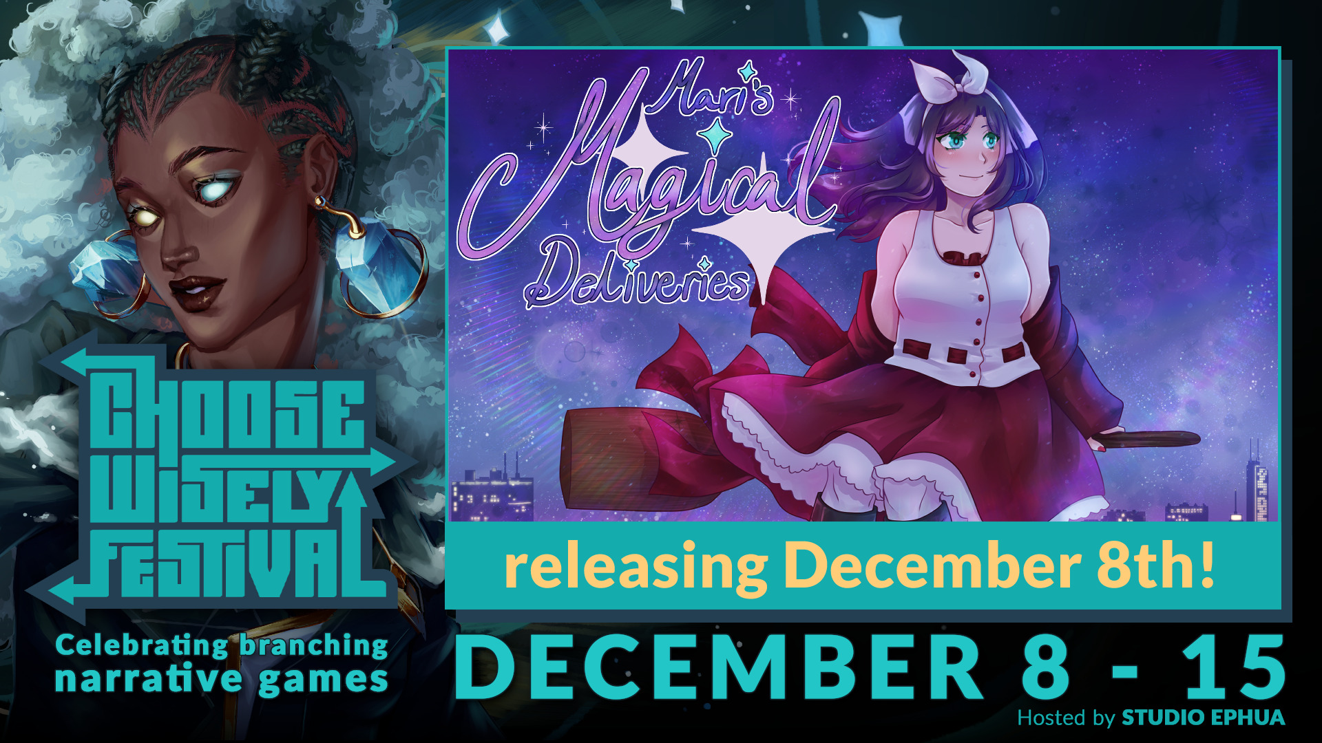 To coincide with the Choose Wisely Festival, a festival celebrating branching narrative games, Mari’s Magical Deliveries will be fully released on December 8th!